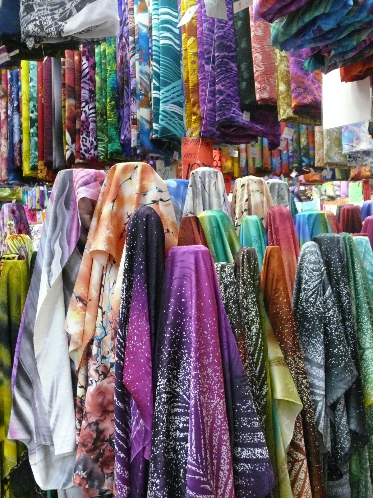 | Aaahh....the colours....the shops usually display materials for clothes in front. |